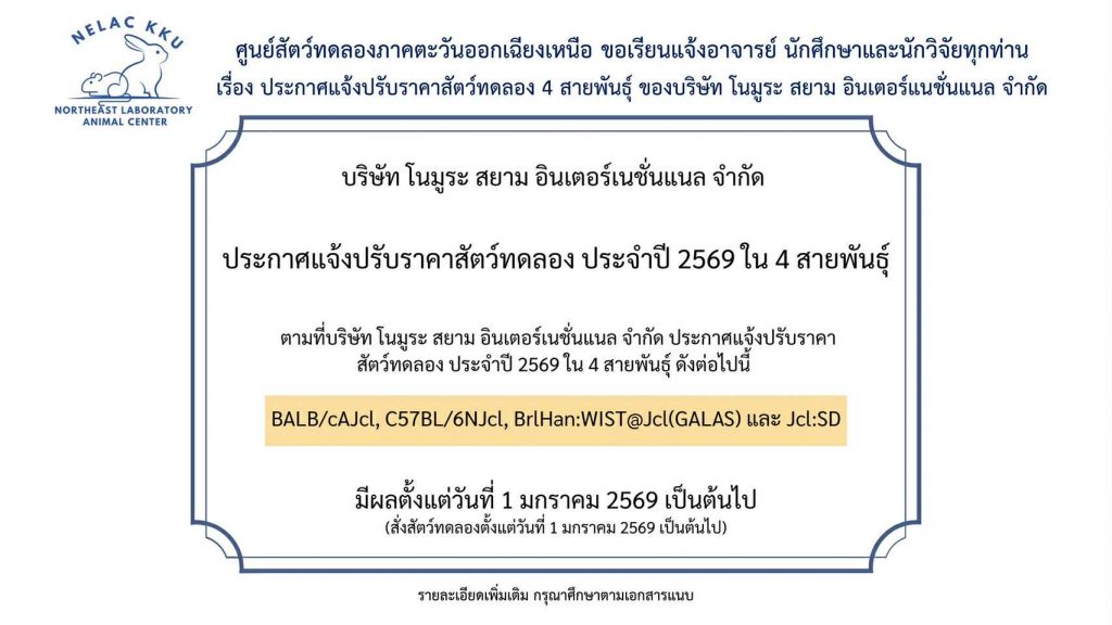 ศูนย์สัตว์ทดลองภาคตะวันออกเฉียงเหนือ มหาวิทยาลัยขอนแก่น เว็บไซต์ https://nms.kku.ac.th